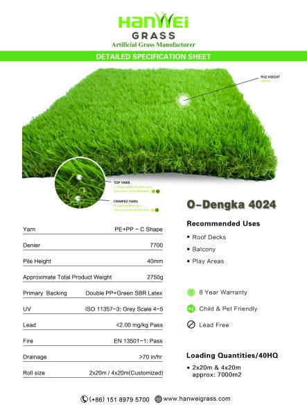 Utilizing the latest in synthetic turf technology, weve created the ultimate in luxury artificial grass. O-Dengka is second to none in outstanding quality and comfort. O-Dengka with the pile height of 40mm.Its a synthetic grass product that looks great to the eyes and feels great for when you kick your shoes off let the luxury grass encompass your toes.