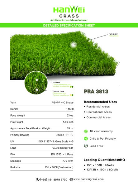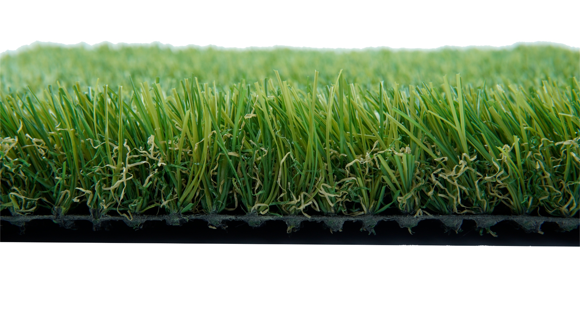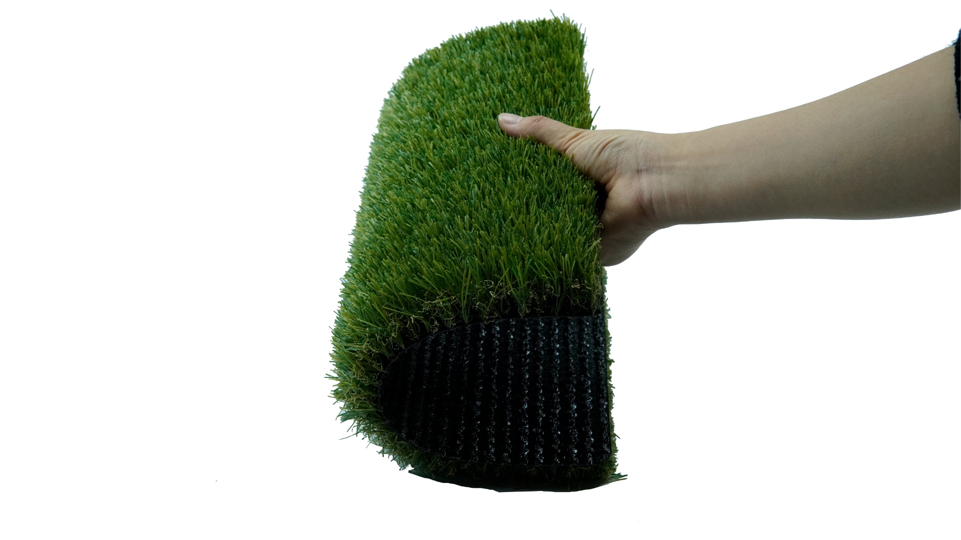 Introducing our new C-shaped grass with a pile height of 38 mm (1.50 inch). Its standout feature is the soft and comfortable texture of the C-type grass yarn, along with impressive abrasion resistance, ideal for hot climates. The surface combines straight and curly yarns, with the straight yarn in pine green and apple green shades, offering a perfect blend and enhanced comfort. The curly yarn, in pine green and light yellow, is particularly suited for children’s play areas and courtyards.