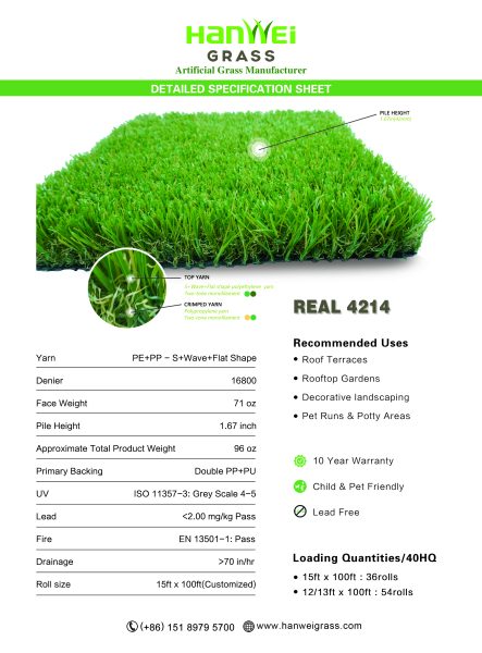 RERL 4214 with a pile height of 42mm(1.67inch).Its multi-colored blades and dense thatch create a lush, natural appearance while offering exceptional resilience.This turf delivers unparalleled authenticity, setting a new standard in landscape design.