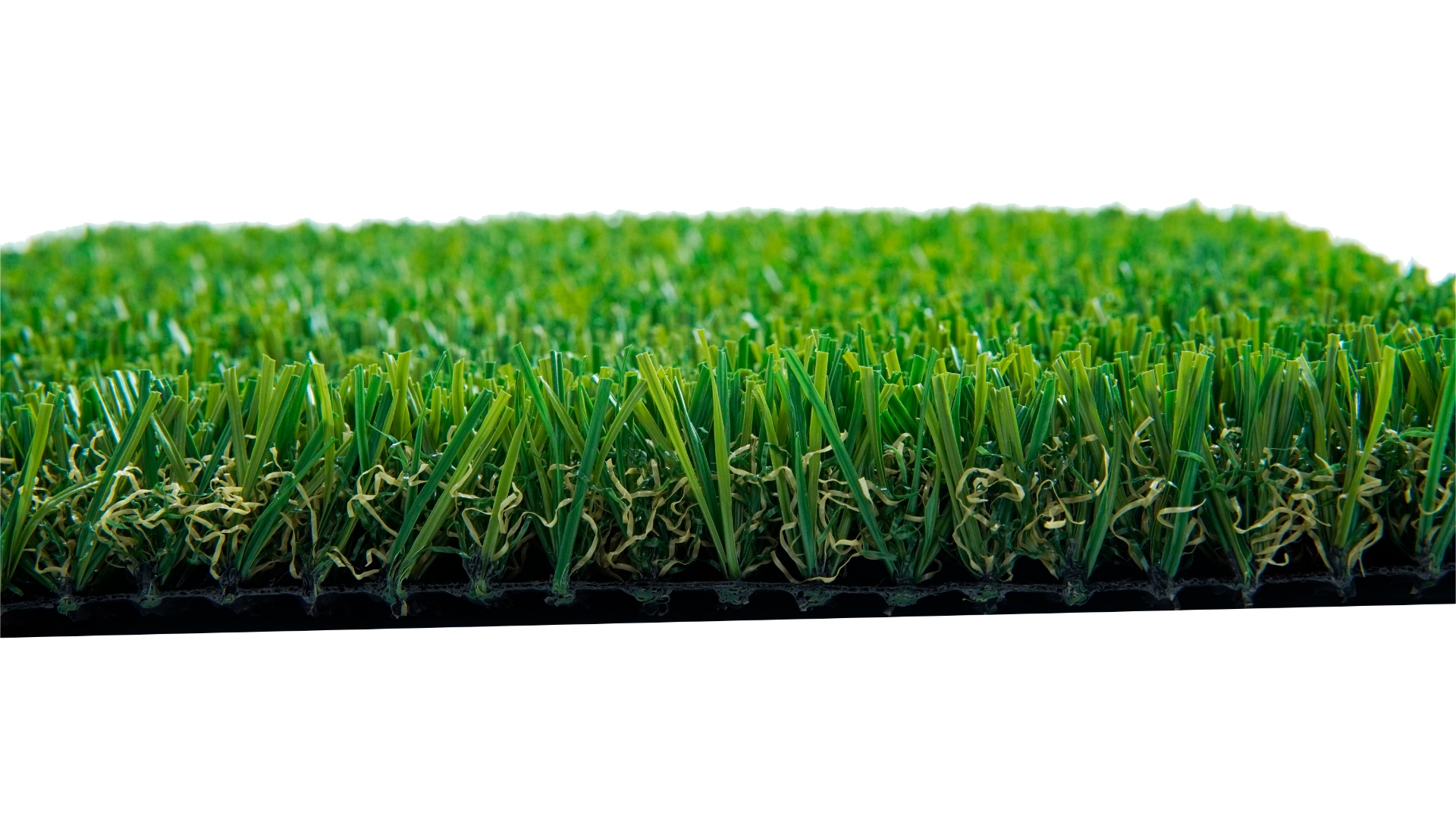 Introducing SUN 25, our latest product with a 25mm (1 inch) pile height, featuring a premium appearance and resilience. Its S-shaped yarn design and encrypted drainage holes, combined with straight yarn in turquoise and olive green and curly yarn in fruit green and light yellow, create a lively summer vibe.