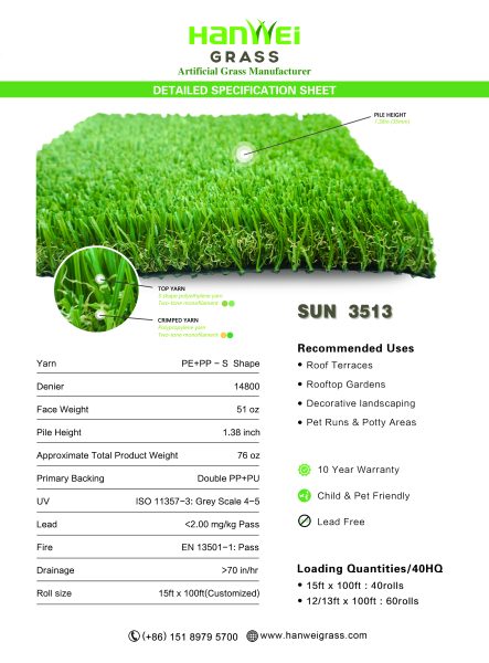 One of our economical options is the SUN 3513, featuring a 35mm (1.38 inch) pile height. The low pile height and moderate density give it a soft, lovely look and a great feel under bare feet. The surface combines straight yarn in olive and apple green with curly yarn in fruit green and light yellow, making it perfect for balcony transformations and gardens.